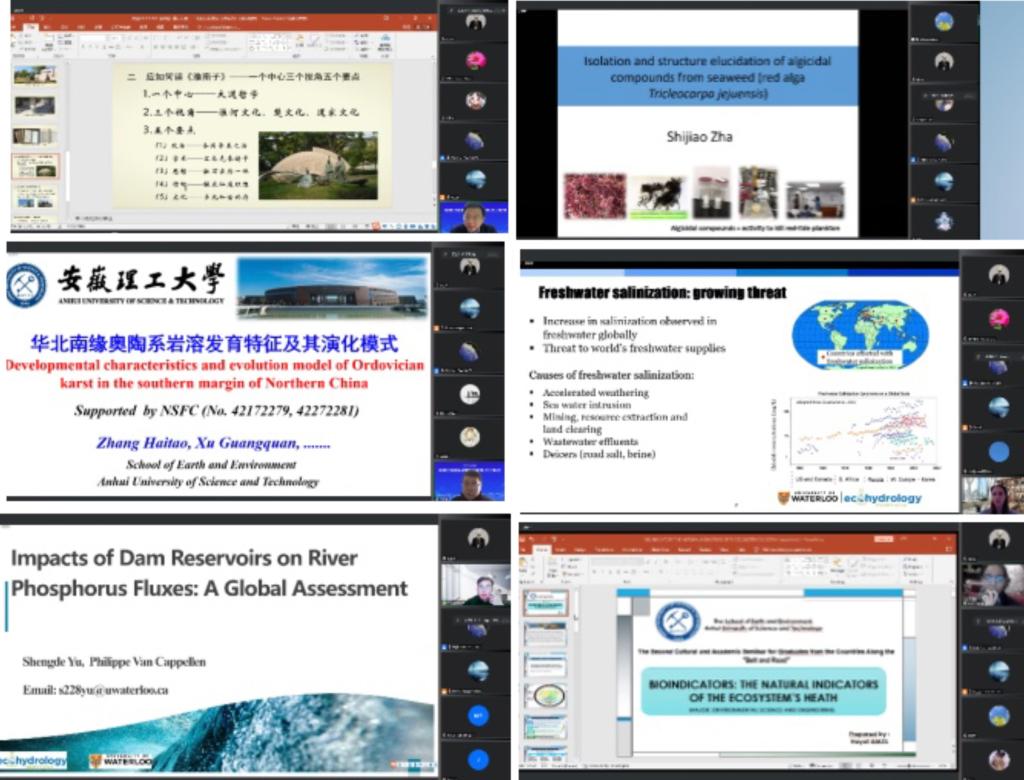 会议邀请了我校马克思主义学院高旭教授、地球与环境学院查世娇和张海涛博士、加拿大滑铁卢大学博士生Jovana Radosavljevic、Shengde Yu、国际留学研究生Evoundou Gigi Norgie (刚果)、Hayat Amzil(摩洛哥),以及博士研究生孔晨晨和邱实等作了14场线上文化与学术报告。报告内容丰富、观点新颖、引人入胜,为与会师生呈现了一场精彩的国际文化与学术交流盛宴。来自中国、加拿大、摩洛哥、刚果布、尼日利亚、索马里等“一带一路”沿线国家和地区的代表近100多人线上参会交流。文化与学术研讨环节由地球与环境学院毕业于加拿大滑铁卢大学的陶晨博士和法国斯特拉斯堡大学的陈上志博士共同主持。