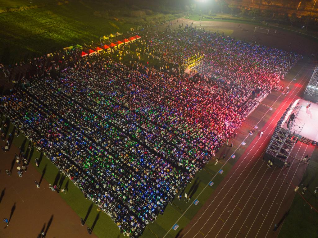 为深入学习宣传贯彻党的二十大精神,展现我校师生听党话、感党恩、跟党走的精神风貌,11月10日晚,学校“学习二十大 永远跟党走 奋进新征程”2022迎新美育晚会在至诚体育场隆重举行。校党委书记郭永存,副校长孟祥瑞,党委常委、副校长宫能平、鲁超出席晚会。各学院(部)领导班子成员,机关职能部门、直属单位负责人,2022级学生辅导员,2022级本科生、研究生、博士生等万余名师生汇集现场共同观看了晚会。