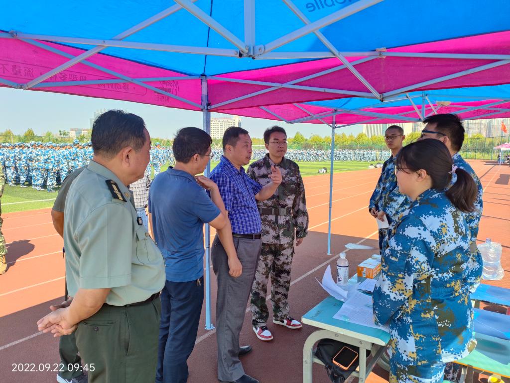9月22日上午,校党委常委、副校长、医学部主任鲁超在党委武装部负责人陪同下来到2022级新生军训现场,看望慰问一线军训教官、参训学生、各学院值班人员及医疗保障人员,了解参训学生的训练情况。