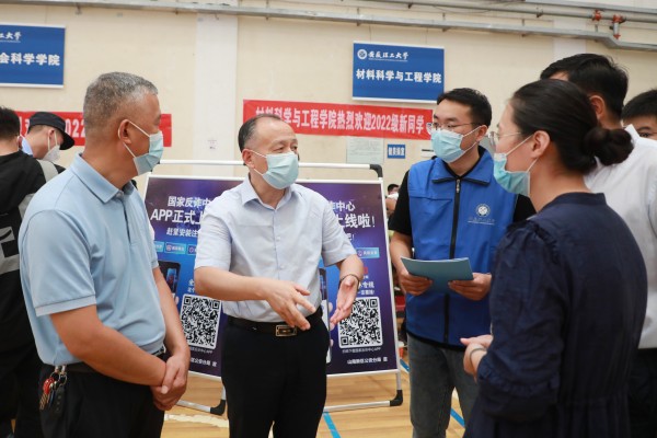 郭永存详细了解了新生报到、行李消杀、绿色通道等流程,逐一慰问了17个学院迎新工作人员和学生志愿者,驻足察看了学院简介展板内容,仔细询问了迎新工作进展、新生报到情况和暖心服务措施,对各学院扎实有效、别具创新的做法给予充分肯定,对全体工作人员和学生志愿者放弃节假日休息,无私奉献、辛勤付出表示感谢。
