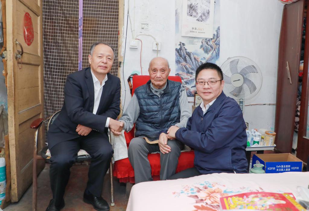 敬老爱老,情暖重阳。10月23日上午,值重阳节之际,校党委书记郭永存一行来到我校百岁老人陈传业老师家中看望慰问,向他致以节日问候,并代表学校向全校离退休老同志送上节日祝福。校党委副书记、常务副校长余玉刚陪同慰问。