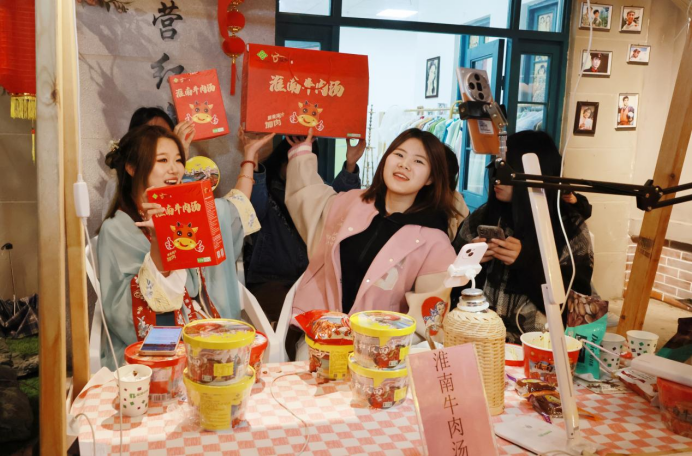 为贯彻落实省委、省政府数字经济发展战略,充分发挥直播推动电商模式创新、业态创新、场景创新的积极作用,宣传推广淮南市“非遗”文化产品,培育新质生产力,3月23日下午,学校在淮南市1952文化艺术街区举行淮南“非遗”产品直播带货大赛启动仪式。校党委常委、副校长董雨,淮南市政府副市长乌吉阿哈买提·吐尔逊出席活动并讲话。校党委宣传部、学工部、校团委、人文社会科学学院,淮南市文化和旅游局等部门主要负责人参加了启动仪式。