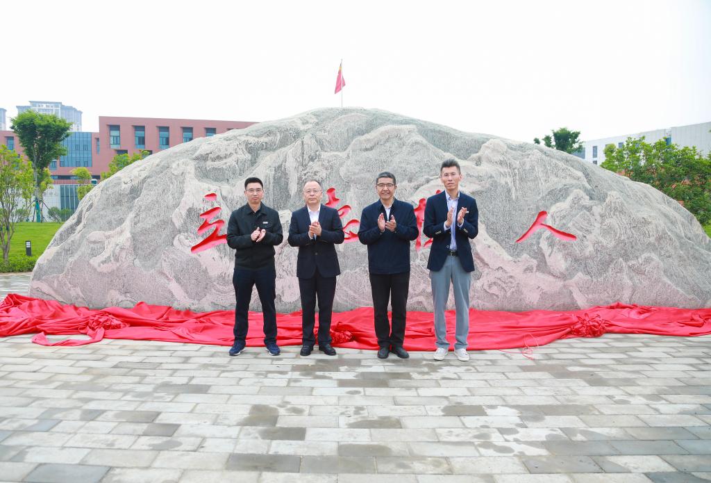 仪式上,郭永存、董雨、陈桅松、徐军林共同为捐赠的文化石揭下幕布。郭永存为捐赠校友代表段云刚颁发了捐赠证书。