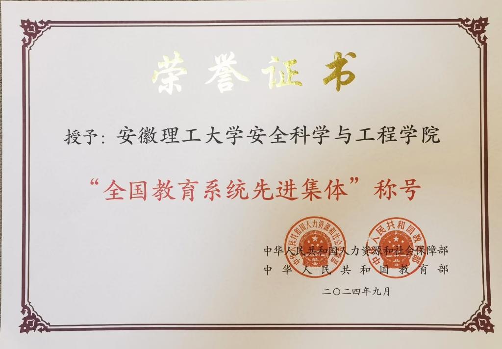会议对585个“全国教育系统先进集体”、716名“全国模范教师”、895名“全国优秀教师”、80名“全国教育系统先进工作者”、99名“全国优秀教育工作者”进行了表彰,我校安全科学与工程学院荣获全国教育系统先进集体。