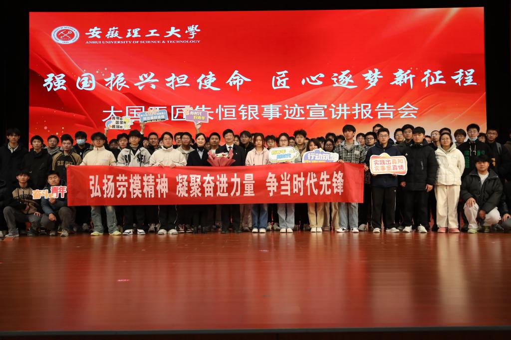为大力弘扬劳模精神、劳动精神、工匠精神,激励青年学生敢于创新、勇于追逐“匠心梦”,12月19日下午,学校在大学生创新创业会议中心举办劳模大讲堂:大国工匠进校园活动,“大国工匠”朱恒银教授为学校师生作主题为“匠心向党,创新筑梦”的报告,全校1100余名同学参加了此次宣讲会。
