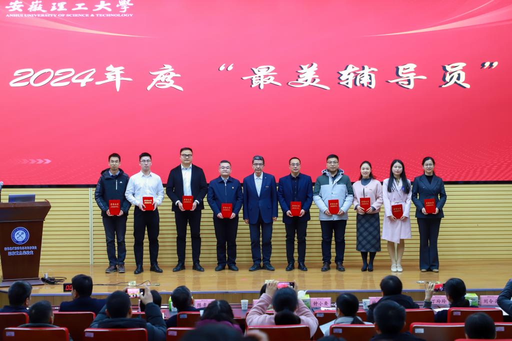 为选树新时代辅导员先进榜样,引导广大辅导员为培养担当民族复兴大任的时代新人,加快建设教育强国矢志奋斗,1月12日下午,学校在国家重点实验室一号报告厅组织开展2024年“最美辅导员”评选现场展示活动。校党委常委、副校长董雨亲临现场指导。经过激烈角逐,储兆晶、纪旭、张晶、兰学强、衡连伟、任翔、汪利萍、杨旭东、陈孝柱、李恕洲等十名辅导员获评安徽理工大学2024年度“最美辅导员”荣誉称号。