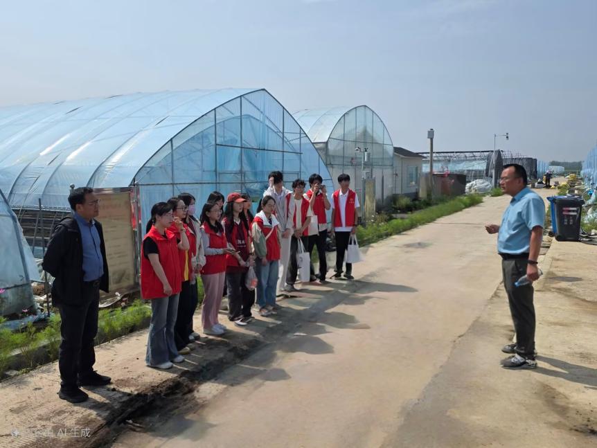 长丰县草莓协会会长侯纯旺讲解了支撑长丰草莓产业可持续发展的“四新”技术(新品种、新技术、新装备、新模式),强调这些创新是提升农业质效、实现高质量发展的核心驱动力。尤为引人注目的是其生态循环实践:通过大面积推广有机肥替代化肥,特别是创新性地采用蚯蚓粪与牛粪科学配比的混合物替代传统土壤基质,不仅显著改良了土壤结构,增强了土壤生物活性,提升了草莓的天然风味,更大幅减少了对环境的化学负荷,体现了对土地和生态系统的尊重。师生们随后实地参观了草莓种植大棚。“高架育苗”等立体栽培模式的应用,生动展示了现代农业在节水节地、精准防控病虫害方面的巨大优势。