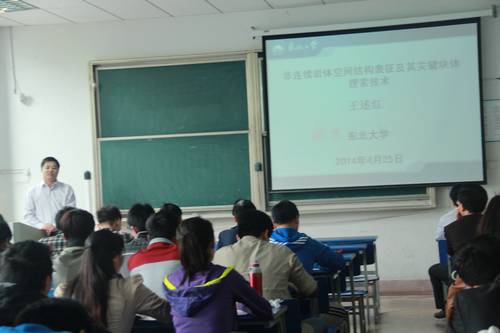 报告中,王述红重点针对如何获得工程岩体结构面信息、如何基于现场工作建立三维数值模型、如何表征工程岩体结构面信息、如何基于节理岩体模型搜索关键块体、如何标定节理岩体力学参数、如何模拟块体滑落过程等方面进行了详细阐述,并与师生就非连续岩体结构的研究进行了深入的交流与探讨。