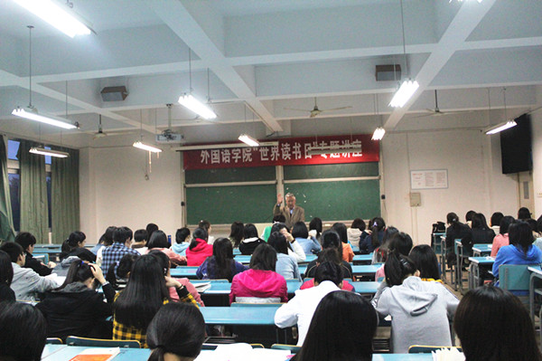 4月23日,是第19个“世界读书日”。晚上7:00,外国语学院邀请原副校长昝连生教授为学生作了“读书人谈读书”专题讲座,外国语学院2013级120名大一学生认真聆听了这位“老”教授读书数十载的心得。