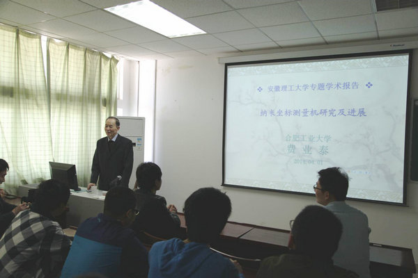 4月1日上午,应校科技产业处、机械工程学院的邀请,合肥工业大学仪器科学与光电工程学院博士生导师,仪器科学与技术一级学科学术带头人费业泰教授莅临我校,在机械工程学院会议室举行了一场题为《纳米坐标测量机研究与进展》的学术报告。