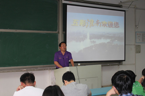 田中良从淮南经济文化发展讲起,向大家介绍了第二故乡的五彩斑斓。接着他从学校的校园历史、校园建筑、校园文化活动及学生工作成效等方面介绍了安徽理工大学,并肯定了外国语学院在学生教育培养、学生工作中做出的积极实践和取得的优异成绩。他根据自己多年管理教育学生的实践经验及夯实的理论基础,结合大一学生在大学中可能存在的“失落感、迷茫感、不满感”等三感问题和身边的学生具体案例,向同学们比较了大学与中学的六个变化,指出了为什么上大学、上大学学什么及怎样学的问题,从为谁而学、该向谁学、该学什么、该如何学等四个方面探索了大学的“学”字,告诉学生要关注大学生活的“高压线、警戒线、发展线、提高线”等四条线,并对同学们的大学生活提出了“快乐大学十八法”,鼓励同学们要树立目标,坚定理想信念,合理利用大学各种资源,更好地适应学习环境,以正确的方式和积极的心态学习生活,让自己的大学生活丰富多彩,成为一流毕业生。