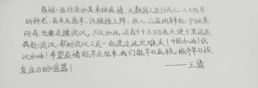 地球与环境学院水文专业2017级1班吴浩群同学说:“作为一名大学生党员,我对中国在抗击疫情中的担当感到骄傲,为自己在疫情防控中担当志愿者为人民服务、为社会贡献出自己的力量而自豪,一定要努力成长为国家和社会需要的人才。”