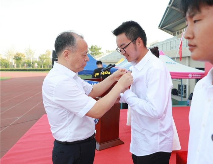 郭永存为新生佩戴校徽