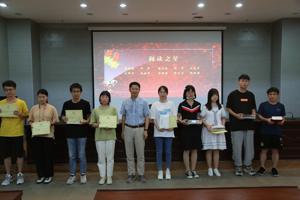 6月11日下午,学校第十二届“阅读之星”、“阅读达人”表彰大会在图书馆三楼报告厅隆重举行。副校长孟祥瑞出席会议,并为获奖的10名“阅读之星”和20名“阅读达人”颁发证书和奖品。