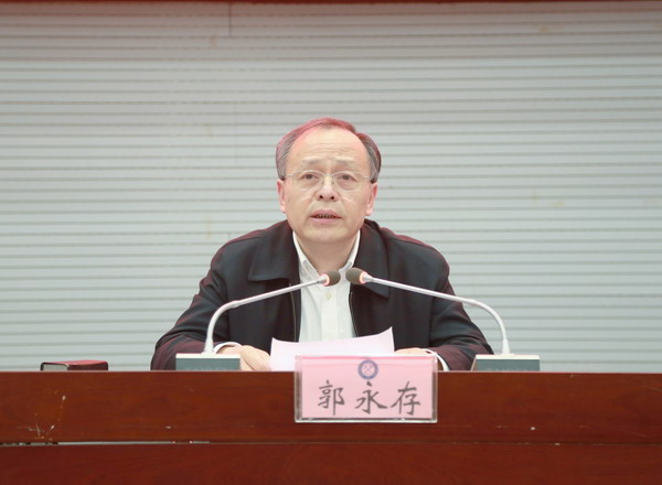 郭永存希望全体干部树立正确的政绩观、党史观,担当起该担当的责任,把全面从严治党各项要求落到实处;希望全体教职工坚守立德树人初心,牢记为党育人、为国育才使命;希望同学们能够不负青春、不负韶华、不负时代,秉承“团结 奋进 博学 奉献”的校训精神,为实现中华民族伟大复兴的中国梦贡献力量。