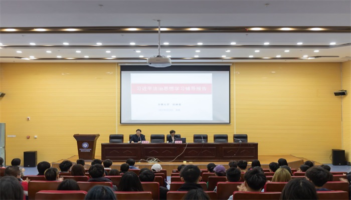 “习近平法治思想是顺应实现中华民族伟大复兴时代要求应运而生的重大理论创新成果,是马克思主义法治理论中国化最新成果,是习近平新时代中国特色社会主义思想的重要组成部分,是全面依法治国的根本遵循和行动指南。”程雁雷首先介绍了习近平法治思想的重大意义,接着分析了习近平法治思想的形成与发展,重点阐释了习近平法治思想的核心要义,让同学们深刻理解了习近平法治思想的发展进程和丰富内涵。