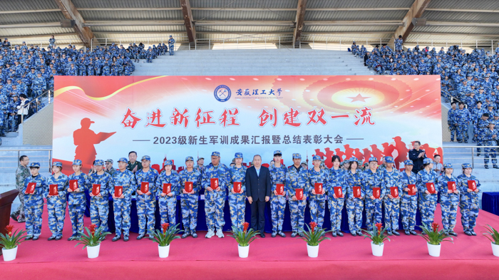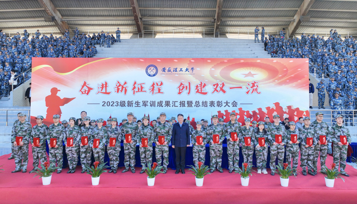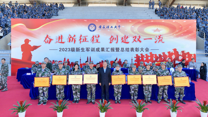 王先江宣读了学校对军训期间表现突出的优秀学员、优秀内务寝室、优秀教导员、优秀教官、优秀国防教育征文获得者和队列会操优胜单位、军训先进集体的表彰决定。与会领导为获得表彰的先进集体和个人颁奖。