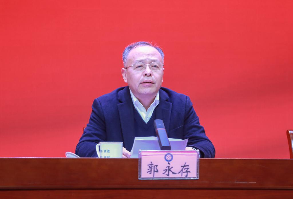 郭永存传达省委书记韩俊同志在全省传达学习全国两会精神大会上的讲话精神,并就深入学习贯彻落实全国两会精神,推动学校高质量发展,提出三点要求。一是把思想和行动统一到党中央对当前形势的判断和工作部署上来,统一到省委要求上来。全国两会精神集中体现在习近平总书记重要讲话和国务院等工作报告中。习近平总书记重要讲话对发展新质生产力,科技创新、科教兴国、深化改革等工作提出了一系列重要要求,为学校做好今年工作提供了根本遵循。要深入学习领会、全面贯彻落实全国两会精神,坚持党中央中心工作推进到哪里,省委省政府工作要求到哪里,学校工作就推进到哪里,以高质量发展的实际成效,迎接新中国成立75周年。二是牢牢把握高质量发展这个首要任务,在全省加快打造“三地一区”,建设“七个强省”的伟大实践中书写安理篇章。要深化人才培养模式改革,全面修订人才培养方案;深化体制机制改革,激发全体师生的干事创业动力;大力实施人才强校战略,打造高水平师资队伍;全力以赴推进科技创新,把科技创新作为“双一流”创建的关键一招推向新的高度;抓住学科建设这个龙头,学位点申报取得新突破。三是要着力提振党员干部干事创业的精气神。推动思想大解放、能力大提升、作风大转变、任务大落实,坚持正确用人导向,让广大党员干部心无旁骛干事业;要办好每一件民生实事,把服务师生、服务院系、服务人才、服务基层工作做深入、做细致、做到位;严守政治纪律和政治规矩,坚持“三不”一体推进,持续整治重点领域腐败问题,加固中央八项规定堤坝。