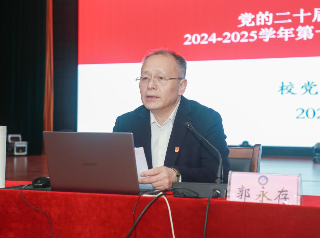 开班式后,郭永存作了题为《在中国式现代化强国建设新征程上绽放青春光彩》的党课暨思想政治理论课。他以当代青年面临的时代大势为切入点,阐释了一代代青年在党的引领下,不忘初心、牢记使命,勇担当善作为,将青春奋斗融入党和人民事业,成为实现中华民族伟大复兴的先锋力量。他指出,学校79载奋进历程铸就了鲜明的红色基因,汇聚了一批名师大家,形成了独有的办学特色,积淀了雄厚的办学实力,培养了一大批杰出校友。一代代安理人始终秉承“团结、奋进、博学、奉献”的校训,弘扬“志存高远、追求卓越、求真务实”校园精神,为国家能源工业科技进步和区域经济社会发展贡献了智慧力量。尤其是进入新时代,学校锚定“双一流”创建目标,深入实施“四个融入”发展战略,高质量发展取得一系列标志性成就,各项事业发生了深层次、格局性变化。
