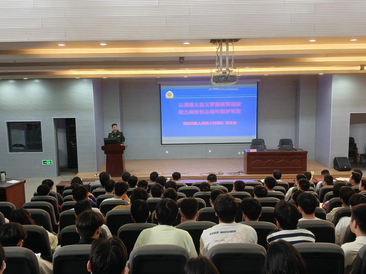 宣讲会上,潘冬波以亲切且激昂的话语,结合生动案例、亲身经历,从参军入伍的重大意义、入伍条件、应征流程、定兵程序,到政治荣誉、社会尊重、经济利益、升学优待,再到部队发展、退役安置等政策,为与会师生全面系统、深入浅出地解读了大学生应征入伍政策及对个人成长的深远影响。通过宣讲,同学们深刻认识到,军营不仅是保家卫国的一线,更是塑造优秀人才的摇篮,入伍是同学们人生履历中浓墨重彩的一笔。