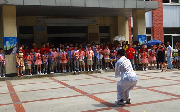 当参观校园结束以后,志愿者们带领小朋友们来到2号教学,为小朋友们举办了一场丰富多彩的迎接六一“中国梦,我们在同一片蓝天下飞翔”的文艺汇演。一开场活力四射的街舞就以高难度的花式动作赢得了小朋友们的满堂喝彩。魔术表演吸引着孩子们好奇的目光,悠扬清远的古筝声回荡在耳畔。同时,孩子们也给大家带来了歌舞表演,清脆的嗓音,活泼俏皮的动作,掌声也一次高过一次。