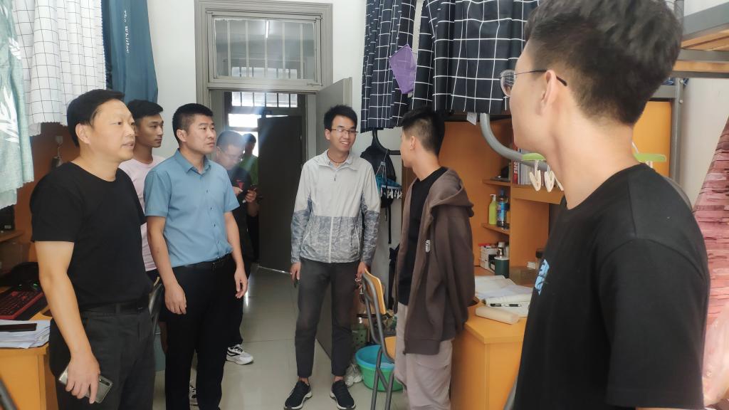 为进一步检查落实疫情防控工作,激励同学们以全新的精神面貌投入到复学复课中去。8月27日下午,计算机学院党委书记王永祥、党委副书记兼行政副院长张旸及各年级辅导员深入学生宿舍,看望返校学生,为同学们送去关心和问候。