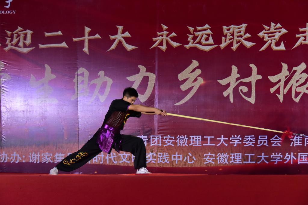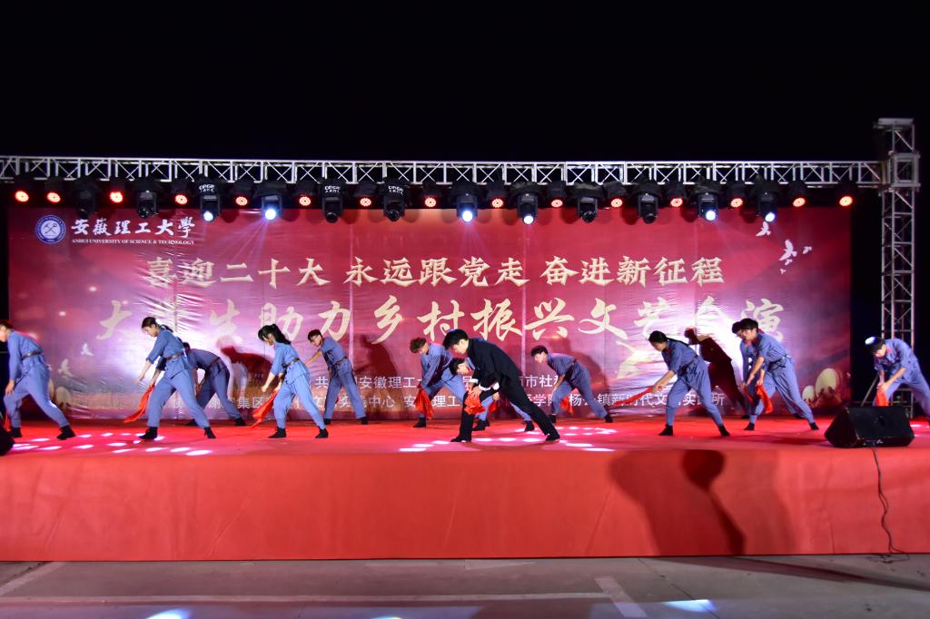 9月14日晚,学校“喜迎二十大 永远跟党走 奋进新征程”大学生助力乡村振兴文艺会演在淮南市谢家集区杨公镇汤王村精彩上演,以实际行动助力乡村文化振兴。谢家集区副区长王炜,杨公镇相关领导,校团委、外国语学院相关负责人,以及汤王村乡村振兴工作队负责人和村民们一同观看了演出。