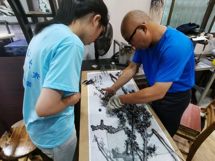 “铁画作品是芜湖市特有的传统工艺美术作品,其锻造技艺于2006年列入第一批非物质文化遗产名录。”这是铁画手艺传承人魏师傅向志愿者们普及着铁画工艺的知识。