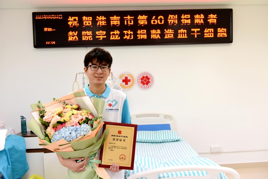 5月22日,化学工程学院2019级能源化学工程专业即将毕业的“00后”大学生赵晓宇完成了一份人生中最特别的“毕业答卷”——为一位素不相识的血液病小患者捐献了造血干细胞,他也因此而成为淮南市第60例、我校第21例造血干细胞捐献者。