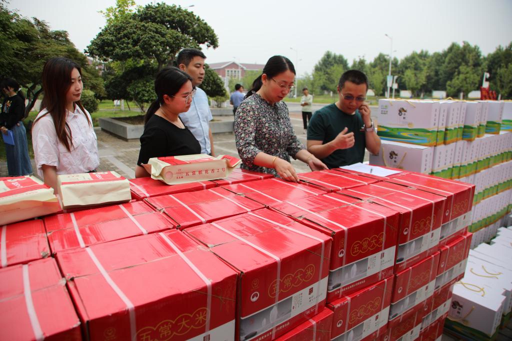 6月5日,在端午节来临之际,学校将乡村振兴消费帮扶与教职工年节福利发放有机结合,从定点帮扶点谢家集区汤王村和三和镇新华村采购的大米、香菇和杂粮包发放给教职工,为教职工带来端午节日的祝福。在学校统一组织和相关部门及各基层工会的协同配合下,经过紧张有序的清点和卸货、分发,顺利完成了农产品发放工作。