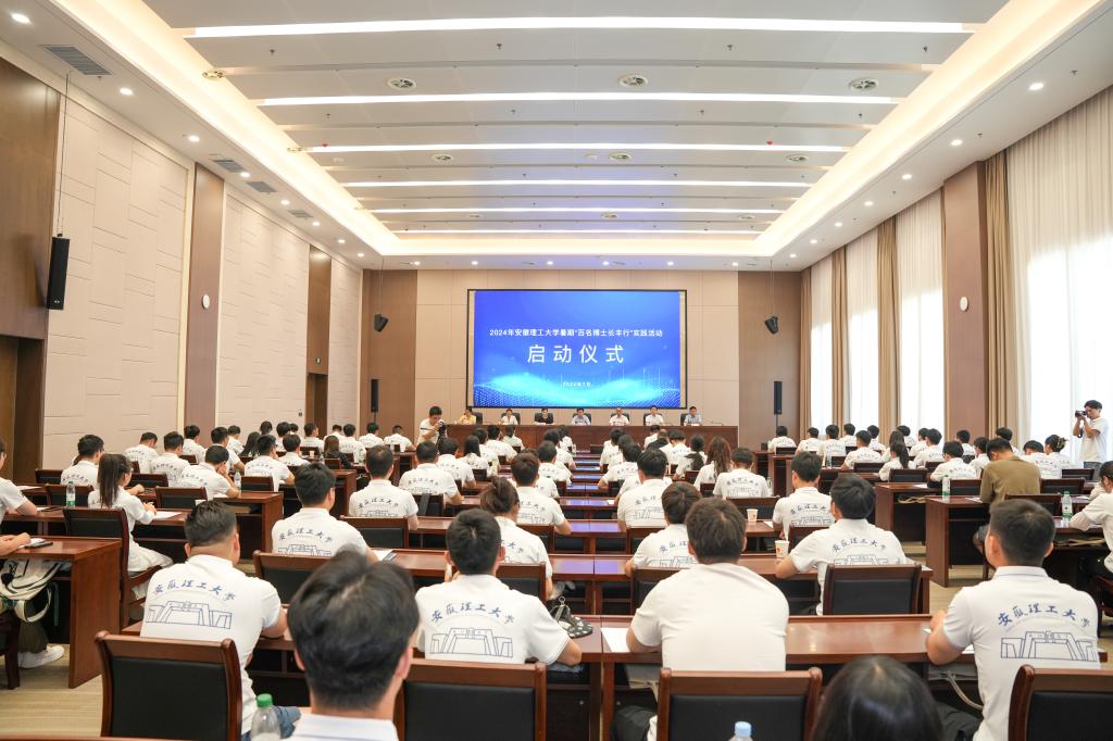 仪式上,出席活动的领导们一同按下了2024年安徽理工大学“百名博士进百企”暑期实践活动启动键。