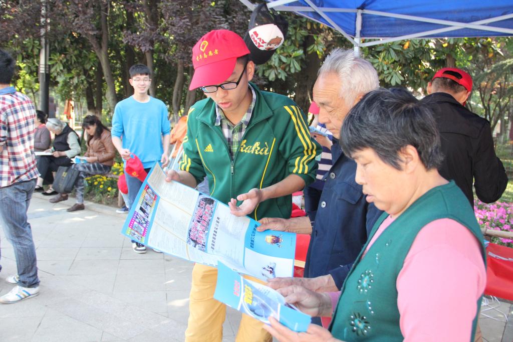 启动仪式结束后,各单位领导参观了防灾减灾图片展。土木建筑学院活动志愿者向广大市民进行防灾减灾知识宣传,向市民分发防灾自救知识手册以及地震相关知识传单。