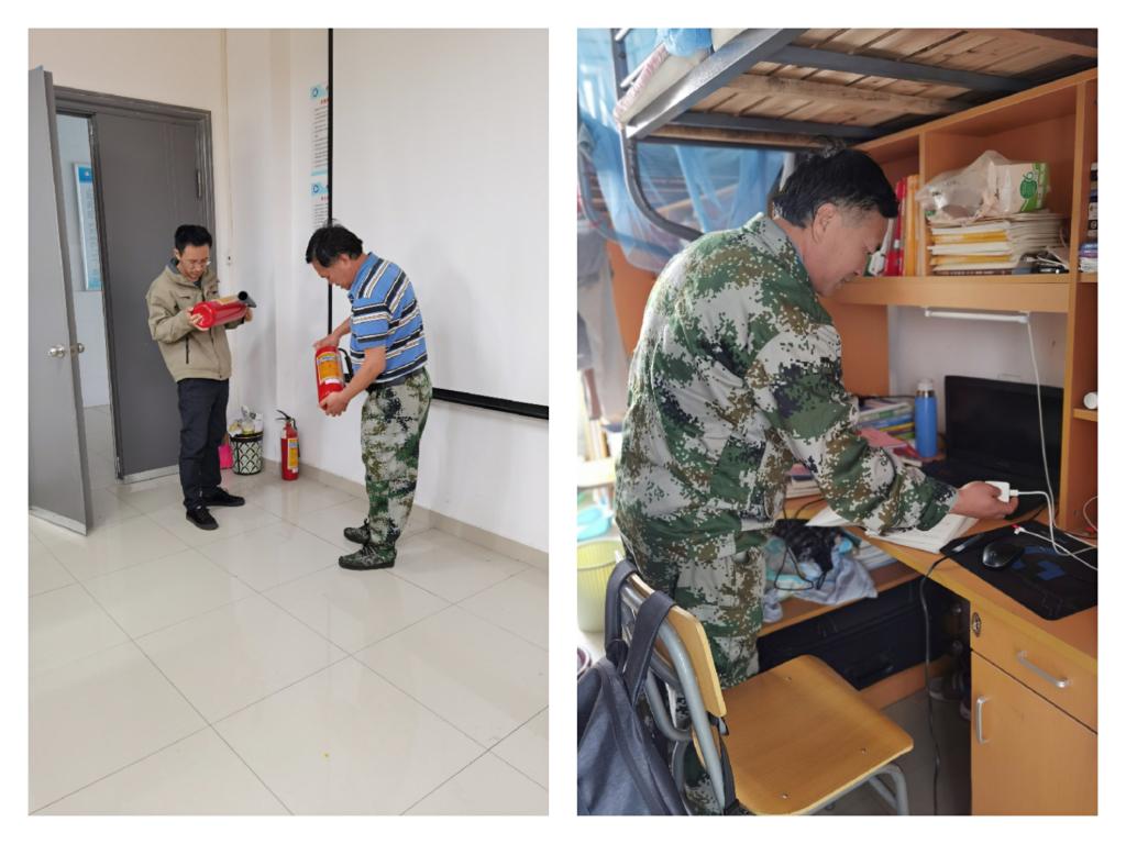 在走访和排查过程中,学院领导认真排查寝室用电情况,逐项排查存在的安全隐患,利用火灾实例对学生进行安全教育,对排查中发现的用电安全隐患,要求立刻通知学生进行整改,确保无安全事故发生。