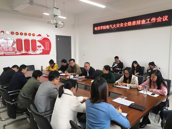10月20日下午,电信学院在励行楼B415会议室召开安全工作会议,专题部署电气火灾安全隐患排查整治工作,会议由学院党委副书记、执行院长周孟然主持。
