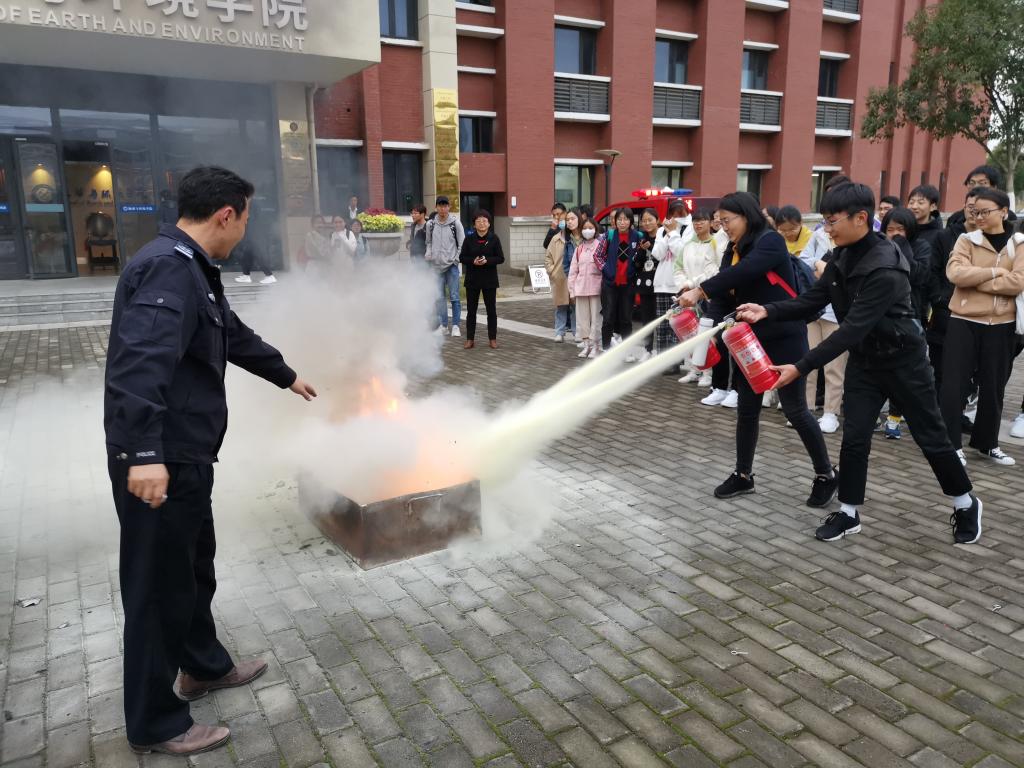 讲座后,在学院楼前广场,彭广峰现场教学常规灭火器的使用方法,师生们认真学习并进行亲自操作演练。此次消防知识讲座,很好地普及了消防安全知识,使师生们进一步树立了防患于未然的消防意识,增强了广大师生的自救技能,为构建“和谐平安校园”保驾护航。