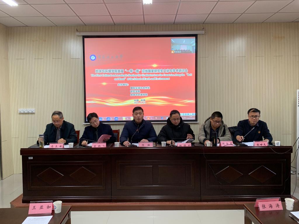 12月29日,地球与环境学院首届“一带一路”沿线国家研究生文化与学术研讨会在学院四楼会议室隆重举行,会议采用“线上+线下”相结合的方式举办。会议由国际交流与合作处、研究生院、地球与环境学院共同主办,国际交流与合作处副处长雷鹏飞、研究生院副院长姚德利、地球与环境学院党委副书记陈楠(主持工作)出席研讨会开幕式并致辞。会议由学院副院长张世文、张海涛博士共同主持。