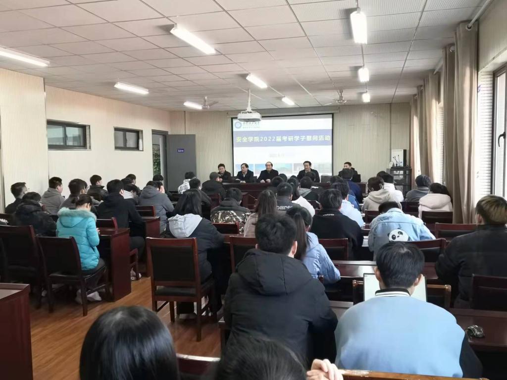 在2022年全国硕士研究生招生考试即将来临之际,为进一步增强考研学生信心,鼓舞考研学生士气,表达学院的关心关爱,12月10日上午,安全学院在宁远楼A410报告厅举行考研慰问活动,为考研学子加油助力。学院领导班子、毕业班辅导员以及考研学生参加活动。
