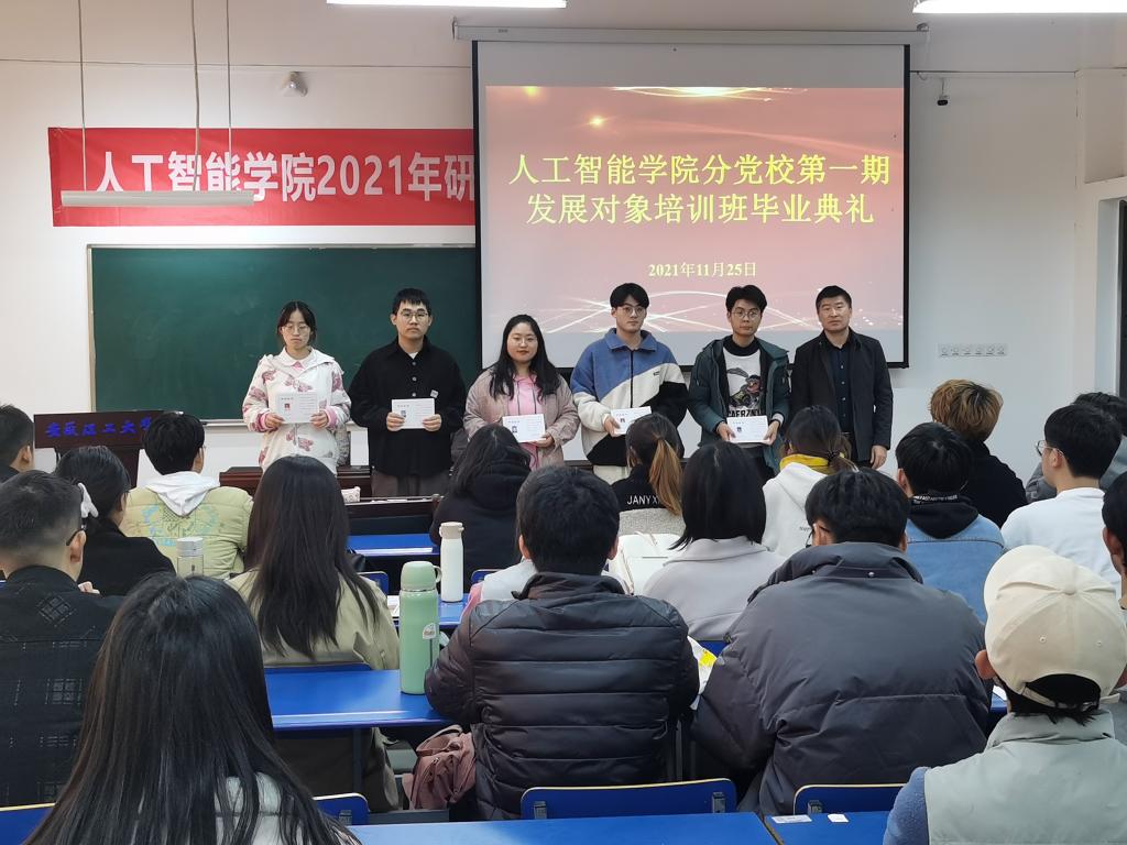 11月25日中午,人工智能学院分党校在崇智楼A109举办第一期党员发展对象培训班毕业典礼。学院党委书记张旸,党委副书记张瑞兴,培训班班主任、辅导员、全体培训合格学员参加了毕业典礼。