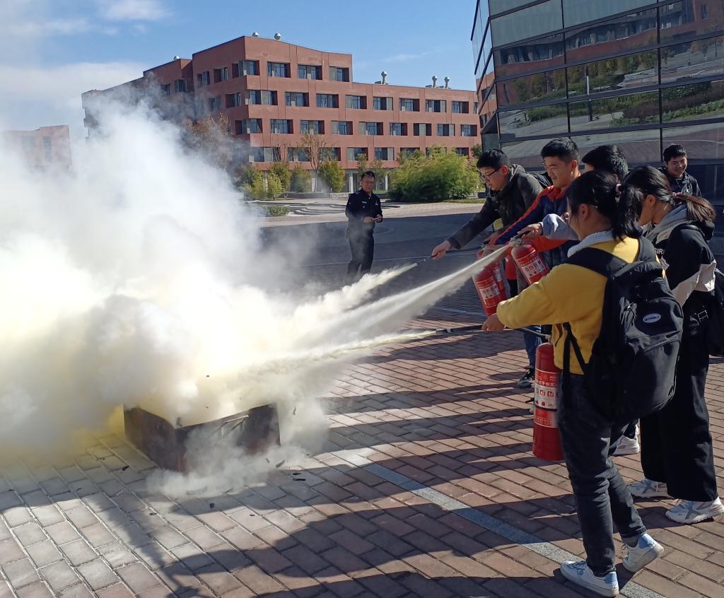 培训后,彭广峰组织全体成员在学院楼前开展初起火灾扑救的实操演练,教授在场学生使用灭火器的方法,提升了学生们的自救互救能力。