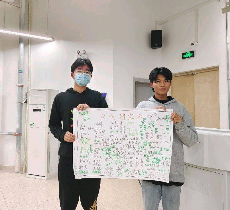 10月31日,各年级以班级为单位进行了“防传销”承诺签名活动,学生郑重签下了自己的名字,并表示要坚决抵制传销,远离传销,坚决不参加任何传销活动。软件工程21-1班团支书李晏宁说:“我们采取签名的方式帮助大家更深入地了解了传销诈骗的手段,既加深自己的认知,也帮助大家提高了防诈骗的意识。”