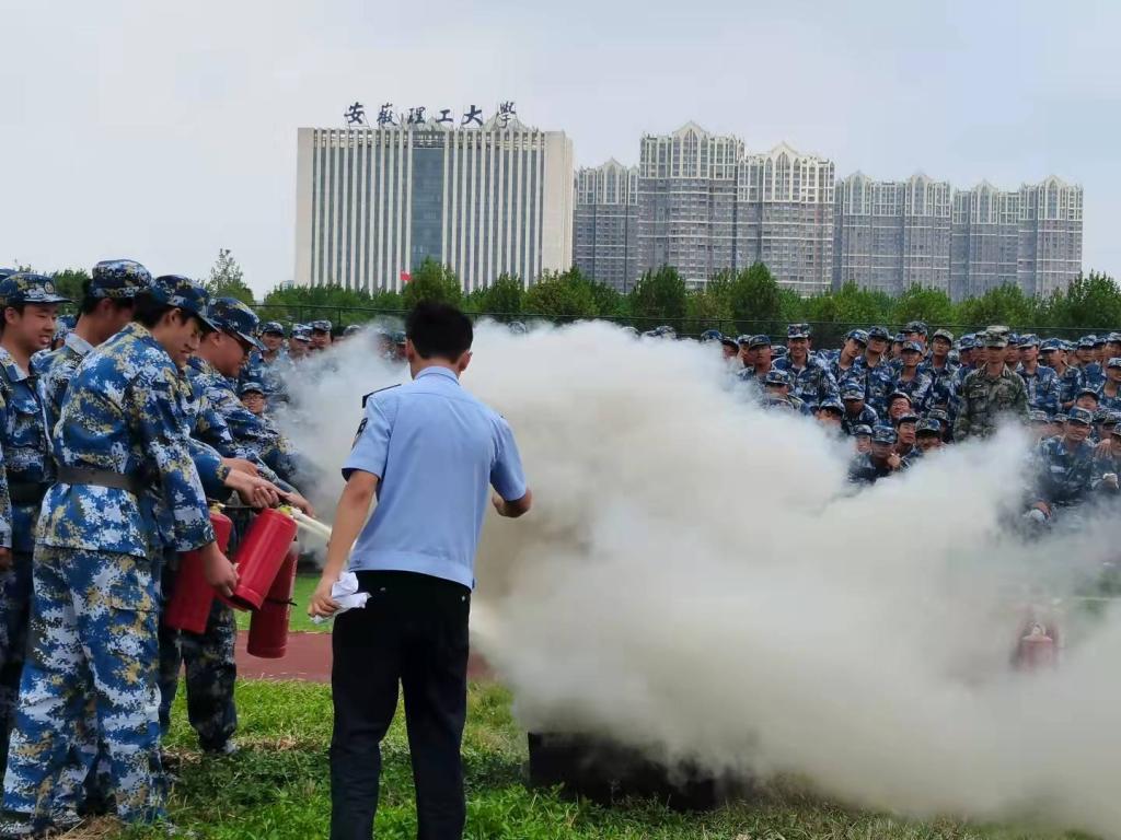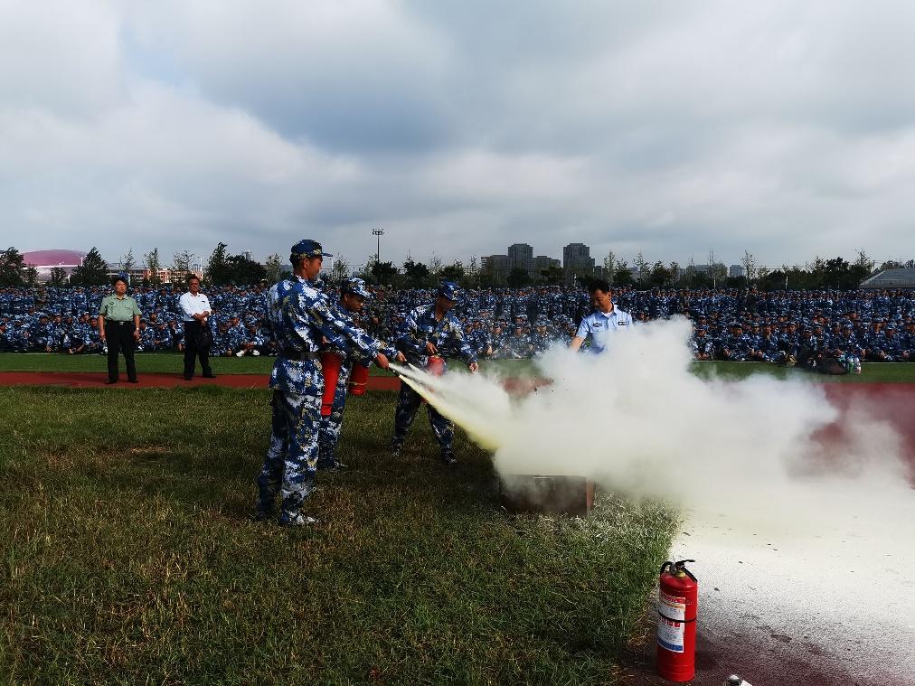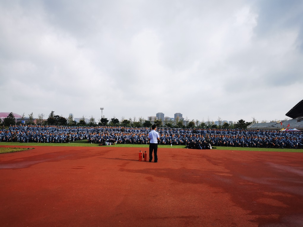 9月20日上午,学校分别在至诚和仁爱体育场,对2021级近8400名参训新生开展 “开学第一课”活动,为军训同学进行消防安全知识教育培训。