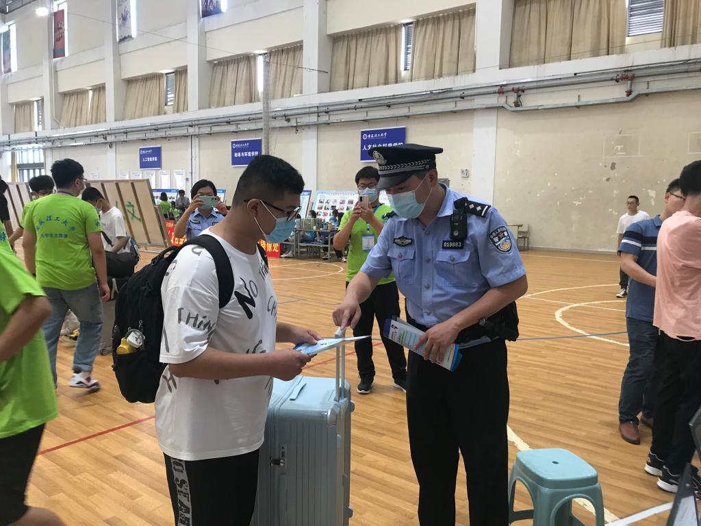 学院高度重视学生安全教育,学生的安全是学院全体教职工共同的心愿,为了提高学生的防骗意识和识诈能力,邀请了负责与学院对接的地方公安工作人员在迎新现场进行反电诈宣讲,并发放了宣传彩页,让学生在踏进校园的第一时间,就建立起全民反诈的钢铁长城。
