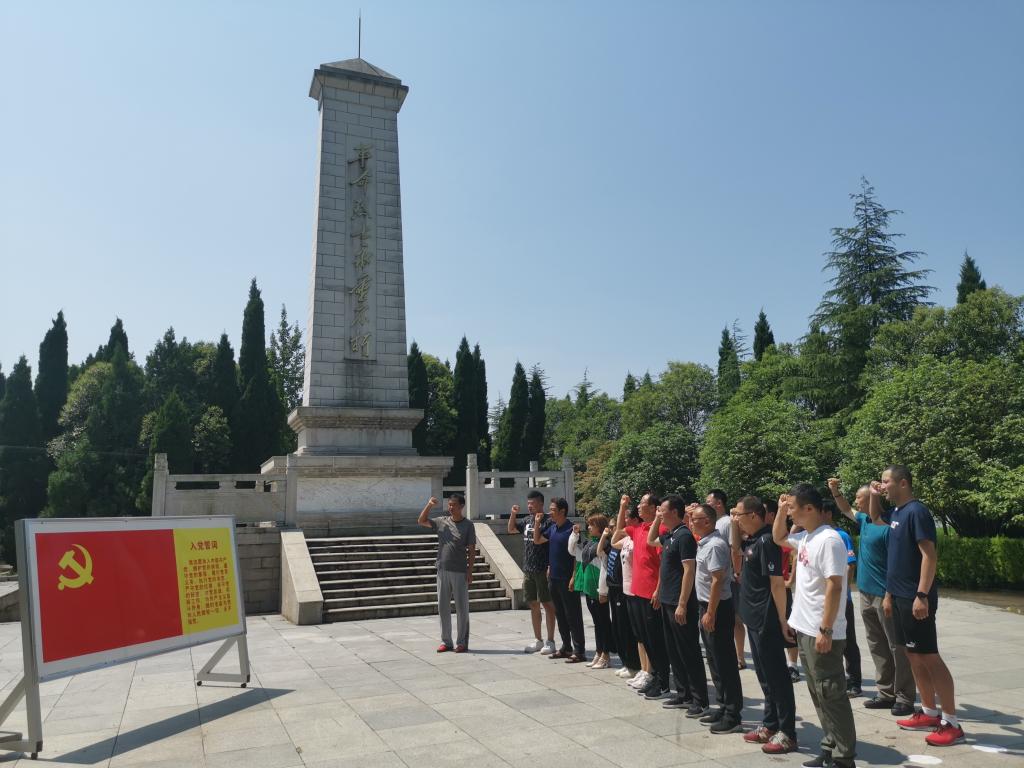 在高耸矗立的革命烈士纪念碑前,全体人员整装列队,在庄严肃穆的气氛中,向革命烈士鞠躬致敬,表达深切缅怀和无限敬仰。全体党员面对鲜红的党旗,高举右手,郑重宣誓,重温入党誓词。