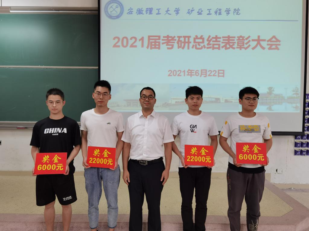 常聚才宣读《矿业工程学院2021年考研奖励决定》,并对学校“推免”“ 直博”以及学院考研奖励等文件进行了详细解读。与会领导为受表彰考研学生进行了颁奖。