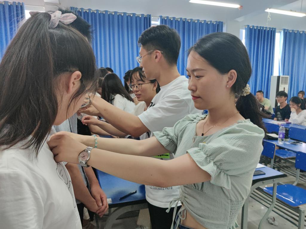 小徽章承载大担当。活动中,14名“老党员”为14名“新党员”佩戴党徽,激励大家要不断增强党员意识,充分发挥党员的先锋模范作用,为党徽增光。“这种以老带新、薪火相传的‘老党员’为‘新党员’佩戴党徽仪式,是一种鞭策,也是一种激励;是一种精神的传承,也是一种奋斗的延续。”一名新发展党员激动地说。