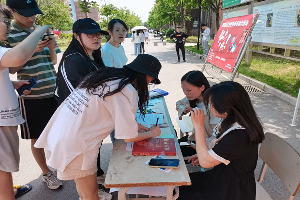 开展红色经典好句分享活动。5月10日至12日,学院在仁苑食堂门口开展了为期3天的红色经典好句分享活动。活动吸引了广大红色经典读物爱好者的目光,大家纷纷驻足并在展板上留下了自己喜爱的经典语句。此次活动共发放宣传单500余份,征集红色经典好语句400多条,现场制作并赠送精美书签300多个。