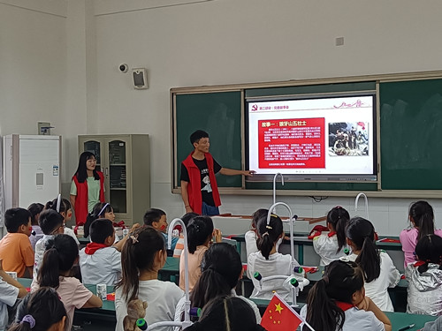 党史宣讲聚人心。为了帮助小学生们更好地学习了解党的光辉历史,电信学院的志愿者还开展了党史宣讲活动,志愿者带领孩子们重温狼牙山五壮士、刘胡兰等经典红色故事,并邀请同学们分享自己读过的党史小故事,分享自己在这些故事里的所感所悟,激发他们内心的爱党爱国之情。