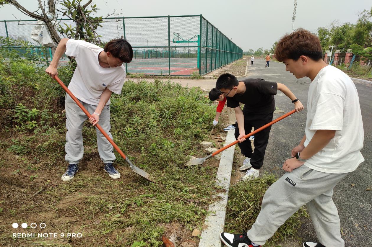 学生在卫生分包区清理杂草