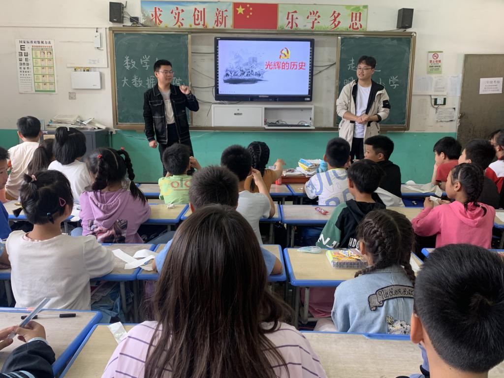 为庆祝中国共产党成立100周年,推动党史学习教育走进小学校园,深入基层、深入人心,5月14日,数大学院组织学生党员前往明德小学开展了“传承红色基因 党史教育进小学课堂”主题教育活动 。