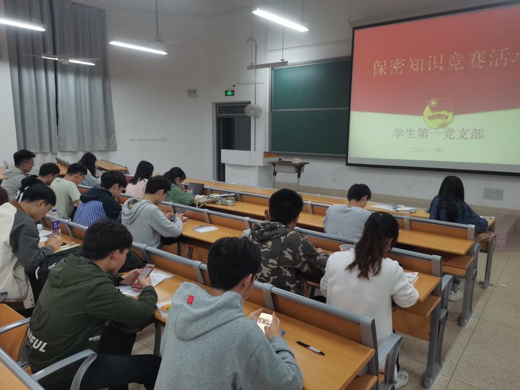 活动伊始,全体学生党员观看保密宣传片,通过普及保密相关知识和政策,增强保密宣传教育的形象性和生动性。随后,学生进入“保密观”微信公众号参与竞赛答题活动,大家进一步深刻认识到保密工作在中国共产党发展历程中的重大意义,牢固掌握了保密知识,切实增强了安全保密意识。学生第一党支部朱玉聪说:“在日常学习生活中,我会从自身做起,在思想上、行动上筑牢安全保密防线,严格执行保密规定,切实保护好国家、学校、个人信息。”
